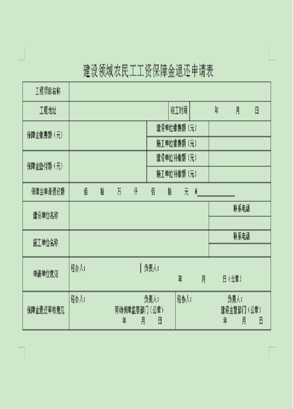 附件:1、建设领域农民工工资保障金退还申请表