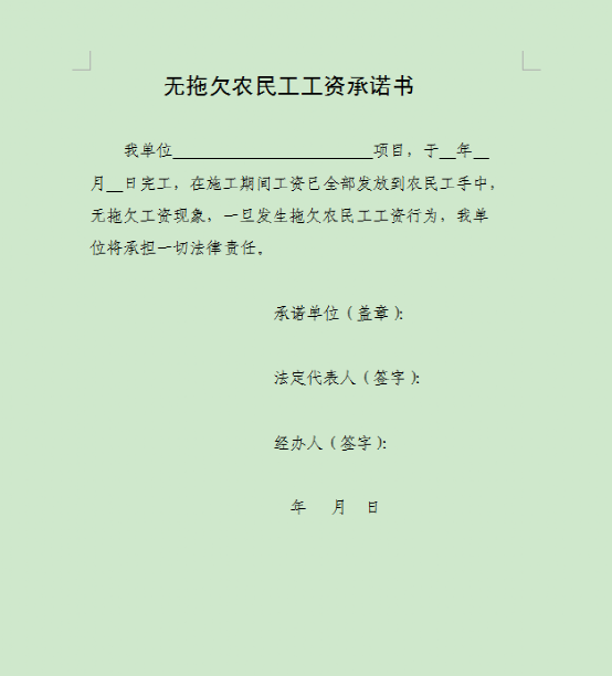 2、无拖欠农民工工资承诺书