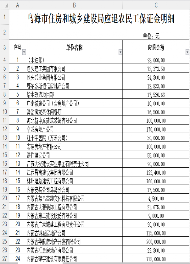 3、未退农民工工资保证金的企业明细
